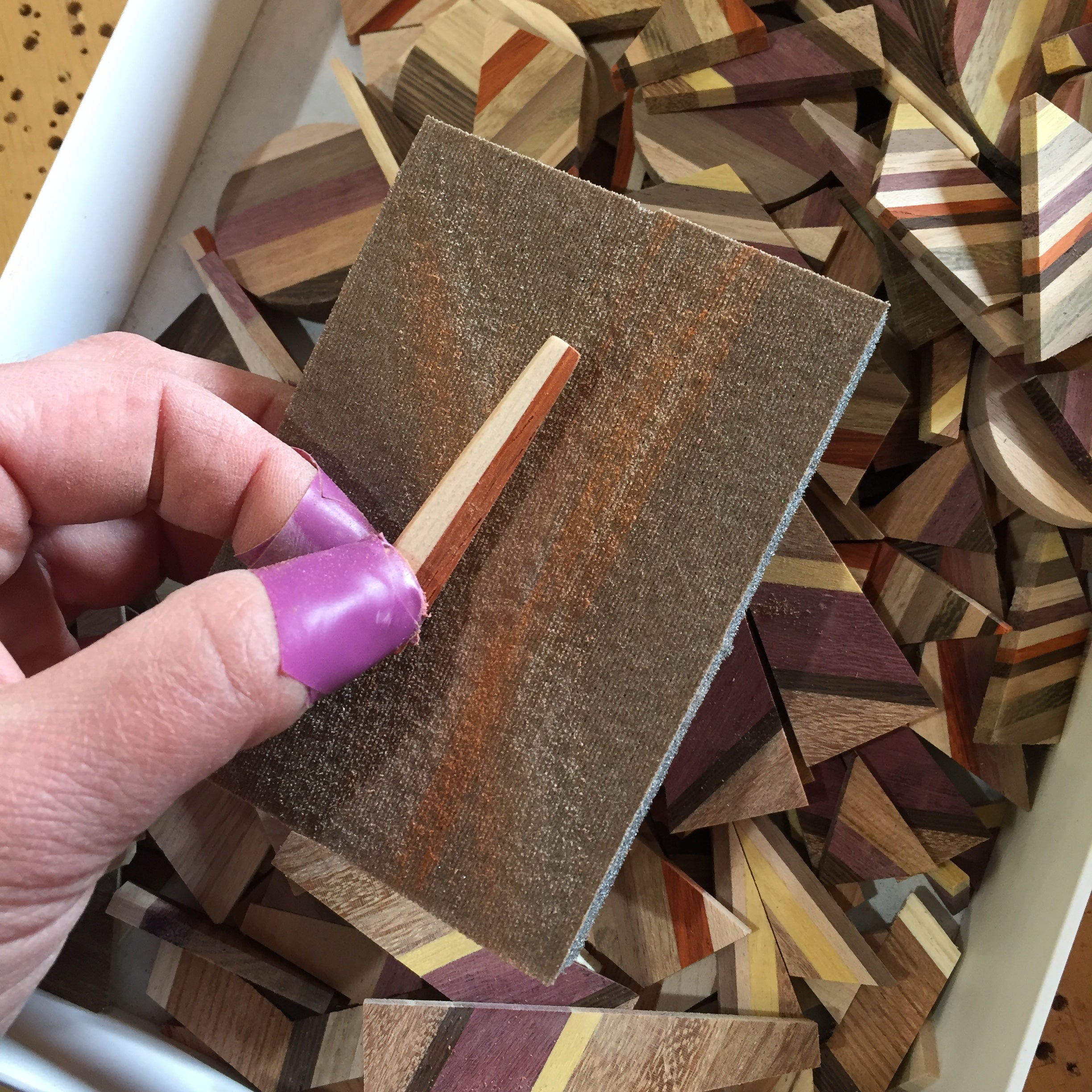 Each piece is hand-sanded with fine grit sandpaper to smooth the edges and remove any remaining imperfections.
