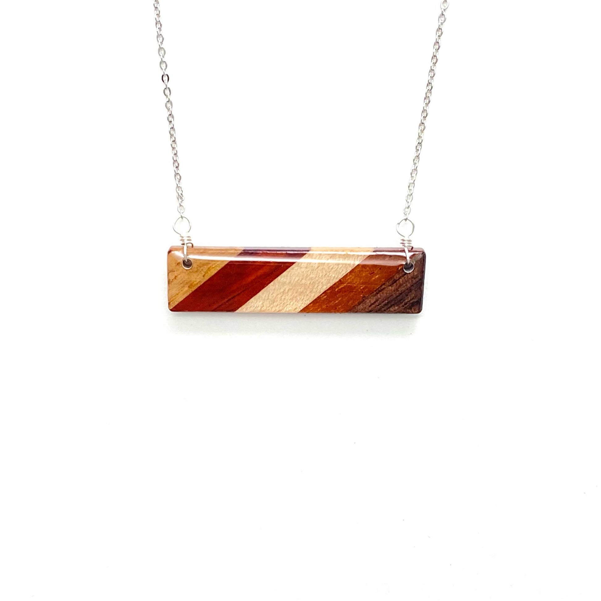 This beautifully crafted reclaimed wood necklace strikes the perfect balance between subtle elegance and eye-catching design, ideal for both casual and dressy occasions. The handmade pendant highlights the natural colors and textures of the wood, finished with a resin coating that adds a touch of shimmer to each piece. Wear a piece of nature's artistry that's been lovingly transformed into wearable beauty.
