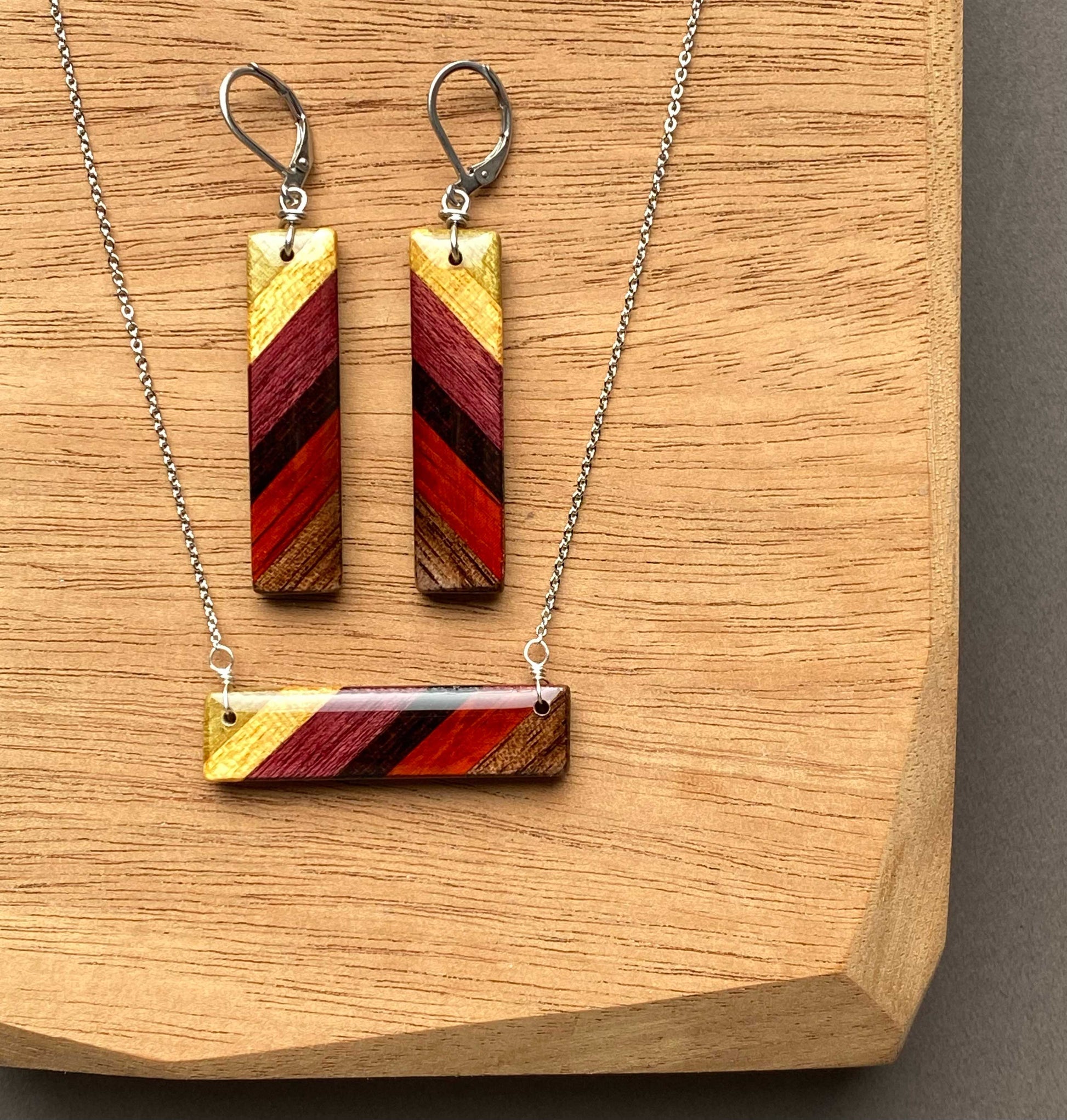 Rectangle Reclaimed Wood Necklace and Earring Set